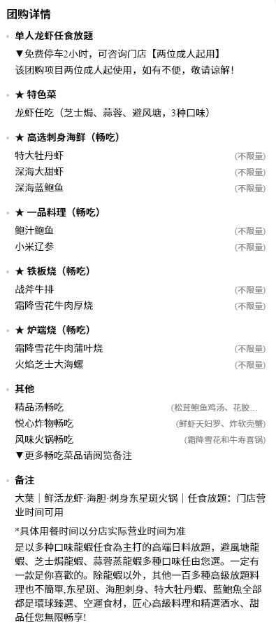 大葉|鲜活龙虾·海胆·刺身东星斑火 锅|任食放题