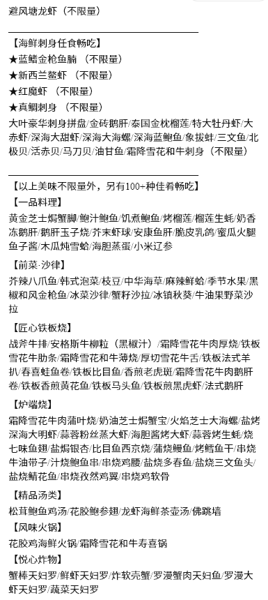 大葉|鲜活龙虾+新西兰鳌虾任食放题|臻选 高级放题